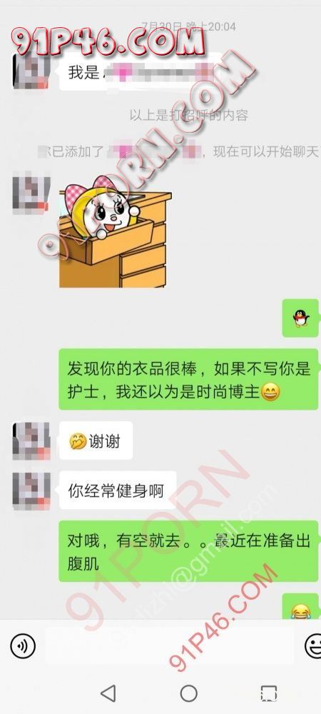 本期女主是一个闷骚小护士,身材还不错,衣品很好,时尚达人。所以刚加的时候赞美开场白。(赞美开场白因人为宜。有的人就不适合这么用,有些女生会觉得你无事献殷勤,非奸即盗。)所以学习女性分类很重要。这就是我阅女无数,掌握的经验了。
